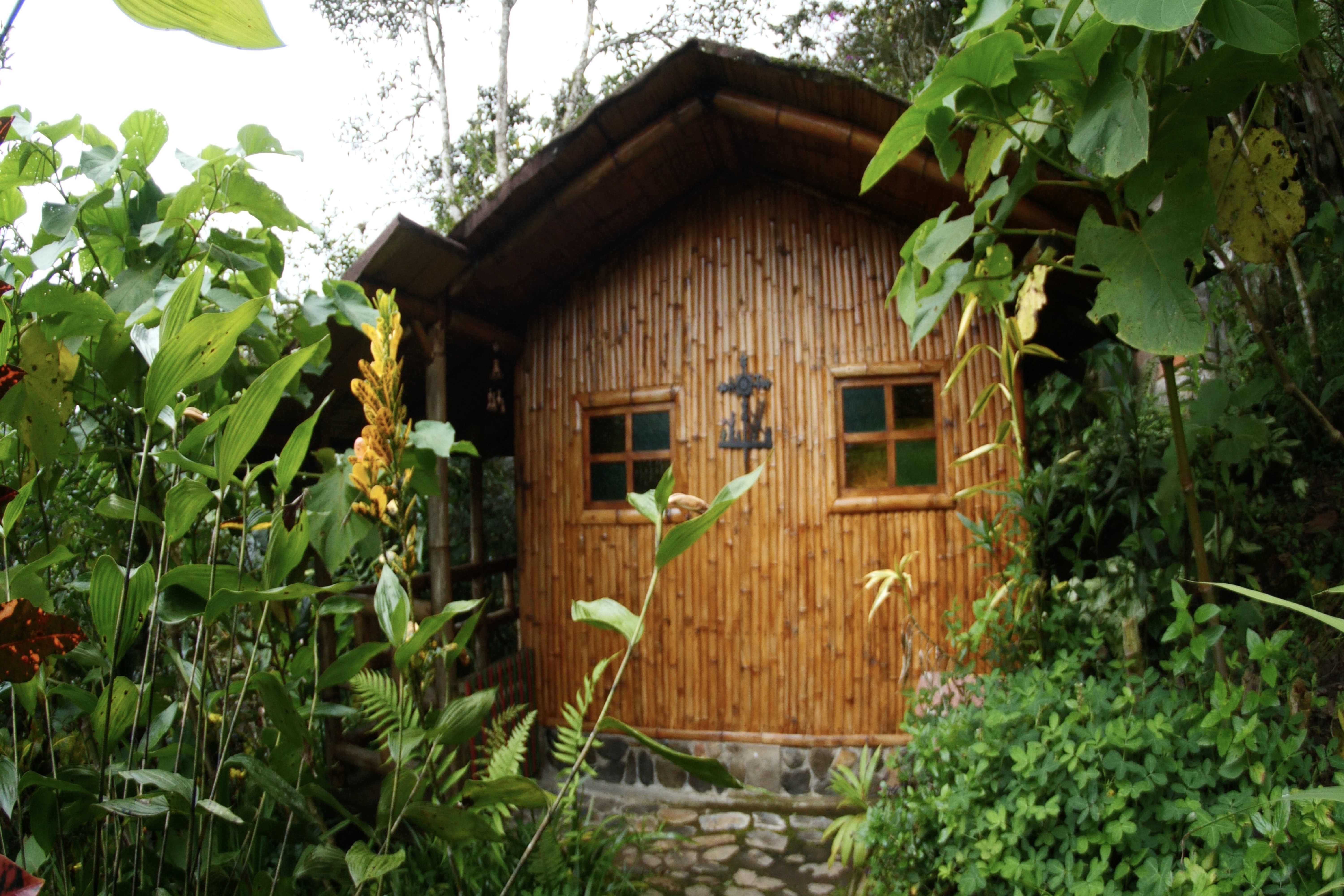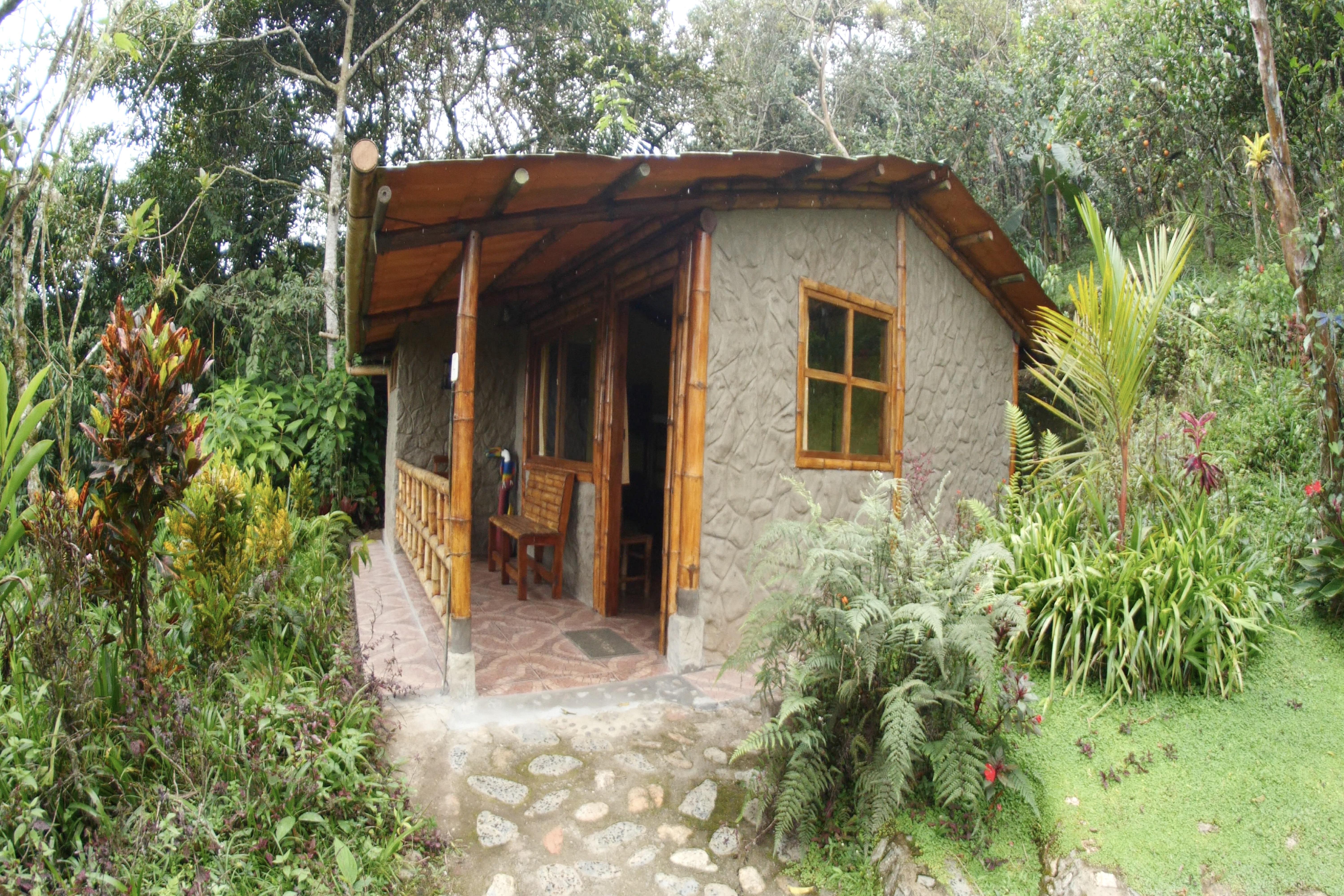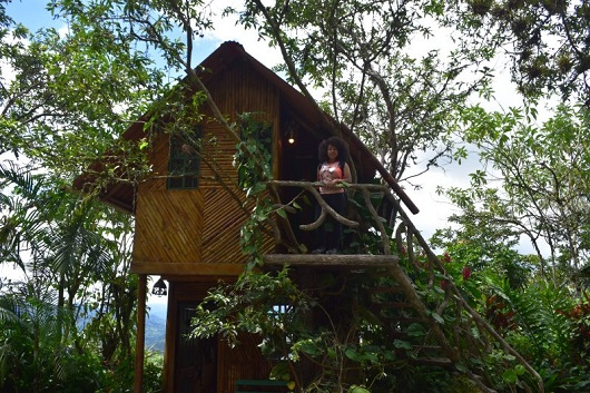 La cabaña del Quinde, ofrece un espacio muy acogedor, construida con bambú rodeada de vegetación propia de la zona.